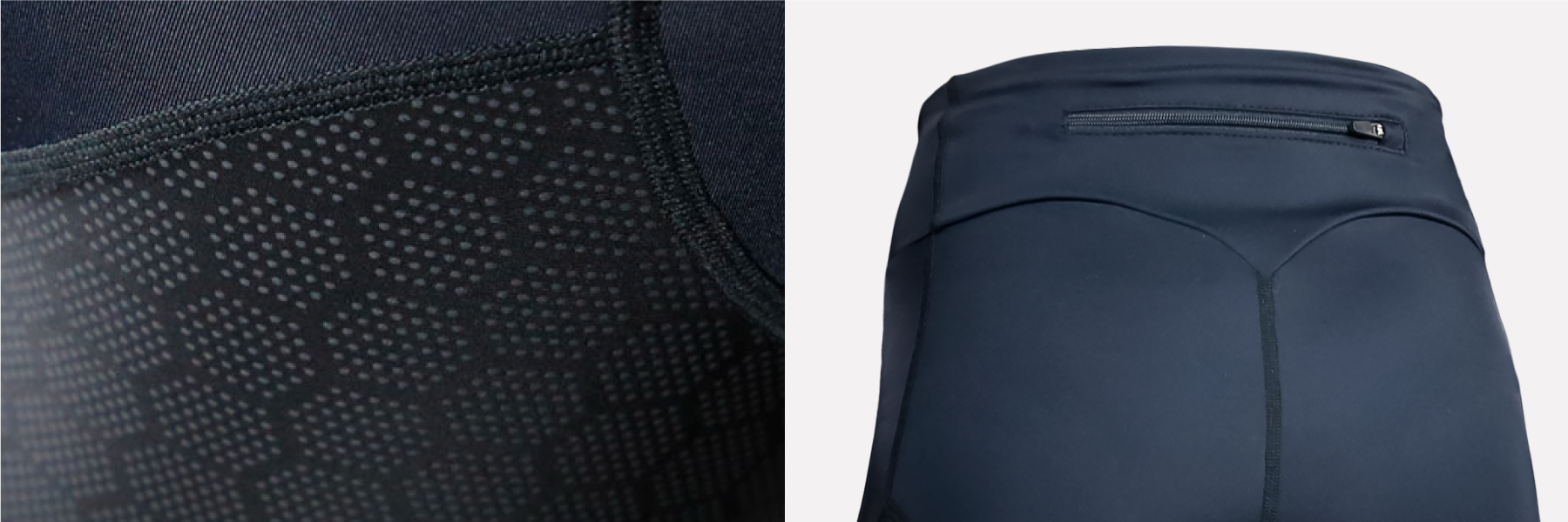 We created TRUE STORY PRO Running Tights for those who seek perfection in every detail. Durable lightweight lycra coupled with ceramic coated side panels and strategic cooling inserts behind knees. Features spacious back pocket for items like mobile phone and smaller front pocket that holds car keys at the reach. Both pockets come with semi auto-lock zippers. High waist concept ensures additional comfort around waistline. 85% of fabric is made from ECONYL yarn which is 100% regenerated nylon.